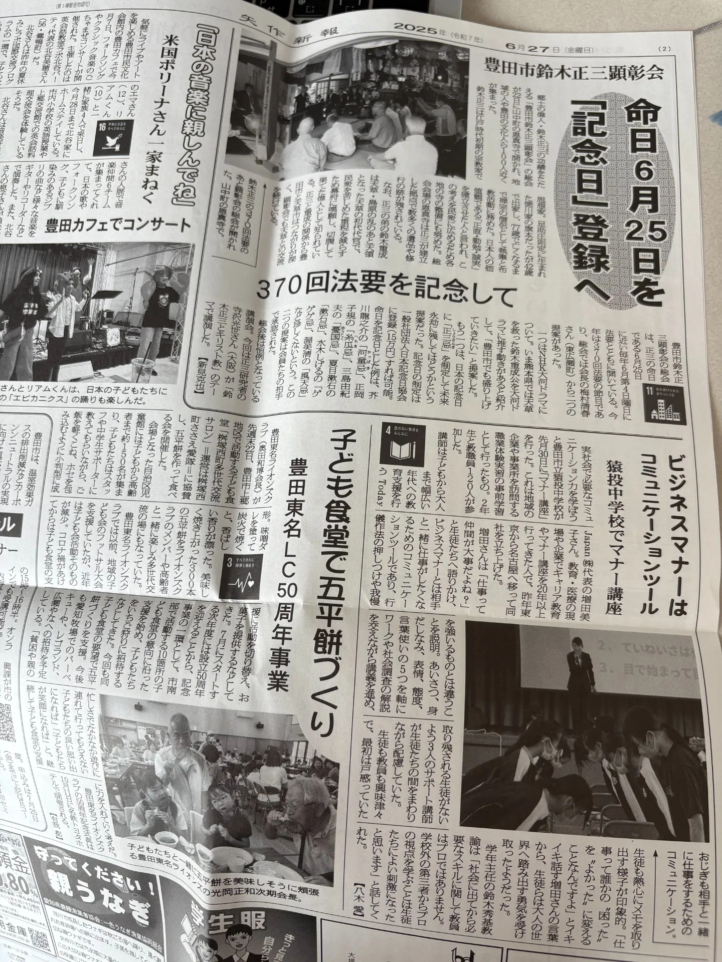 矢作新報に令和7年6月27日号に掲載されました